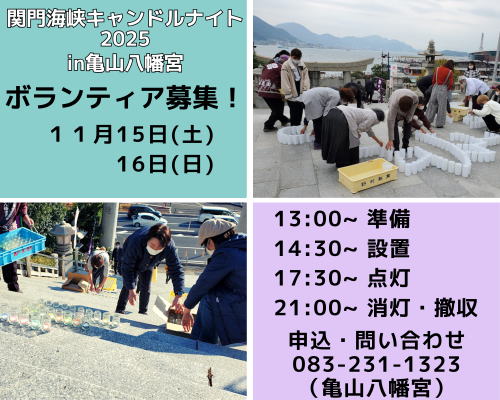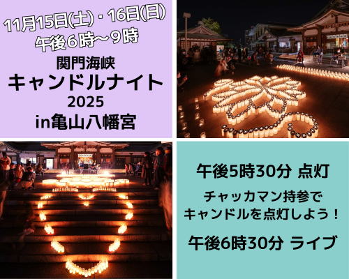 正面階段とご社殿前、約2,000灯のキャンドルが灯る幻想的な夜。今年は常設ライトアップがリニューアル!例年と一味違う雰囲気をお楽しみください。