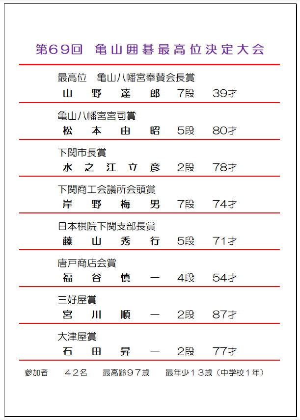 第69回 亀山囲碁最高位決定大会