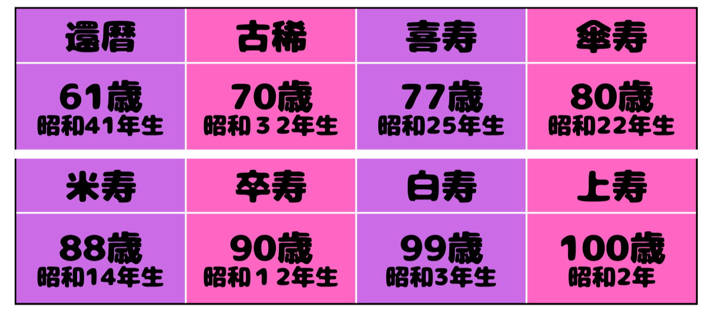 年祝いは、長寿を迎えられたことに感謝し、今後の益々の健康を祈願いたします。