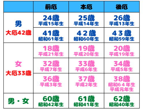 厄年を迎えた方が神様のご加護をいただき、この年に災厄が降りかからないようにお祓いをします。