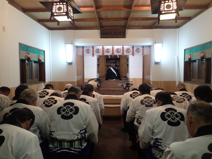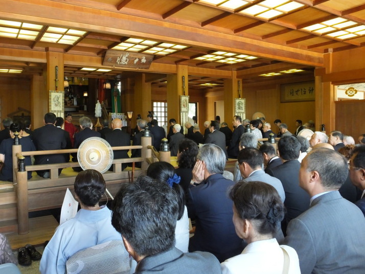 平成の大造営竣工奉告祭・式典平成27年7月20日、奉告祭・式典・懇親会を行い、約130名が集まり竣工をお祝いしました。式典では、竹中宮司の「神宮様の遷宮御奉賛を仰ぎ終え、氏神様の御事と相成りましたがたくさんの方々の真心を頂き、次代への継承ができました」との挨拶に続き、林芳正農林水産大臣、中尾友昭下関市長、金長広典山口県神社庁長が祝辞を述べられました。