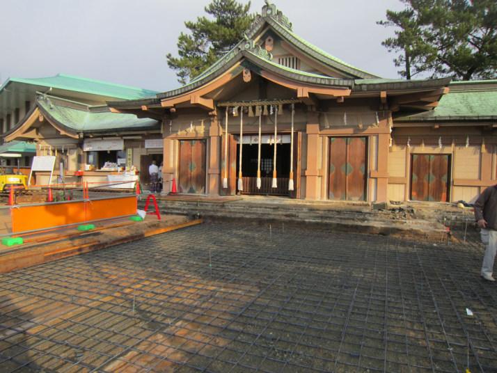境内整備事業(4/4〜4/5 撮影) 海峡ウォークの為に、御拝所を開けてもらいました。 |